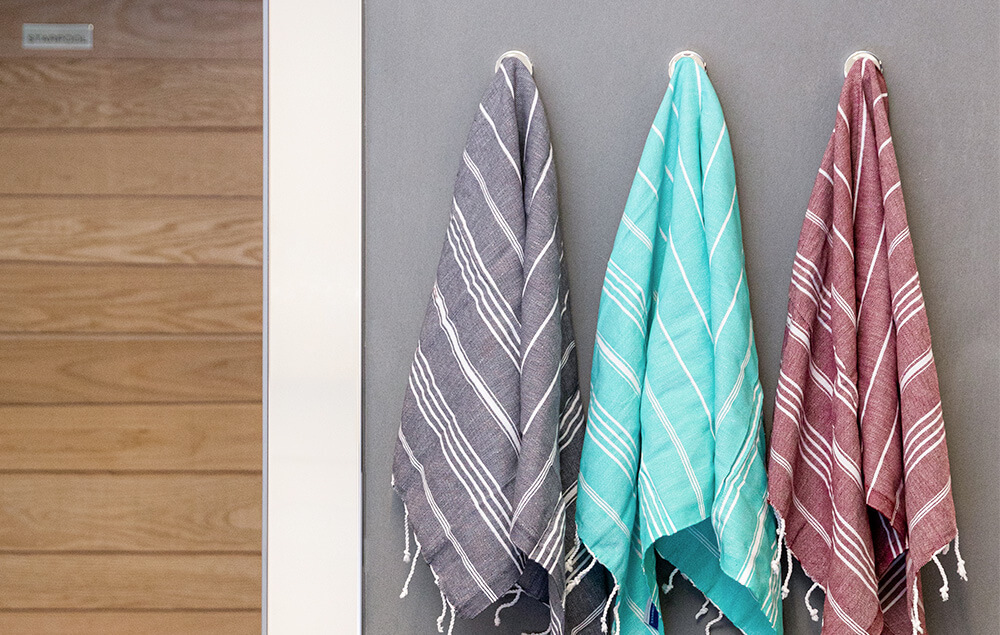 Realised in fine natural cotton and characterised by its distinctive design, our seat-cover towels are extremely soft. They can be used in the sauna, in the steam bath and in the Mediterranean bath. Functional, colourful and very light, it is a personal accessory that ensures very high hygiene.